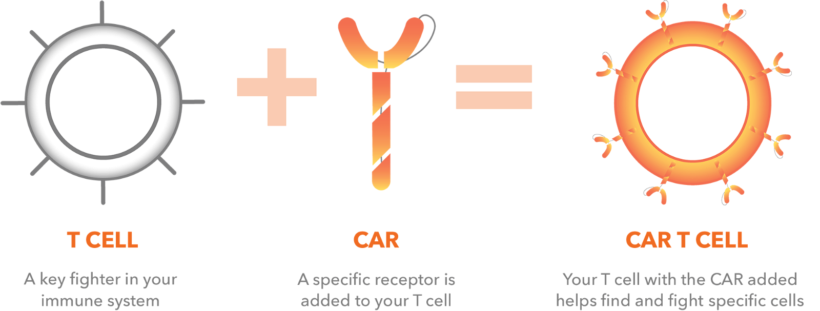 En su base, la inmunoterapia basada en células CAR-T (“chimeric antigen receptor T lymphocytes”) consiste en extraer células del sistema inmune del propio paciente para después poder añadirles, mediante ingeniería genética y proteica, unos receptores específicos. Estos receptores son capaces de detectar células tumorales del mismo paciente, de modo que una vez que la nueva célula inmune detecte el tumor, ésta manda el aviso para poner en marcha el resto de mecanismos del sistema inmune. A partir de aquí no son necesarias mayores intervenciones, el sistema inmune se encarga de la eliminación del tumor así como de la reparación de los daños ocasionados.